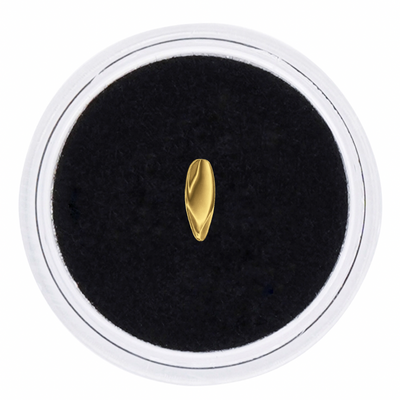 Dentluxe's 18k SOLID GOLD RAINDROP CAP Gold Tooth Gems are manufactured from only the finest 18k Solid Yellow Gold. They will not tarnish or discolour in the mouth. All gems have a flat back surface making it possible to safely bond the gem to your tooth. The size of each gem is approximately 5mm (0.5mm thickness). The price listed is for 1 Gold Tooth Gem.