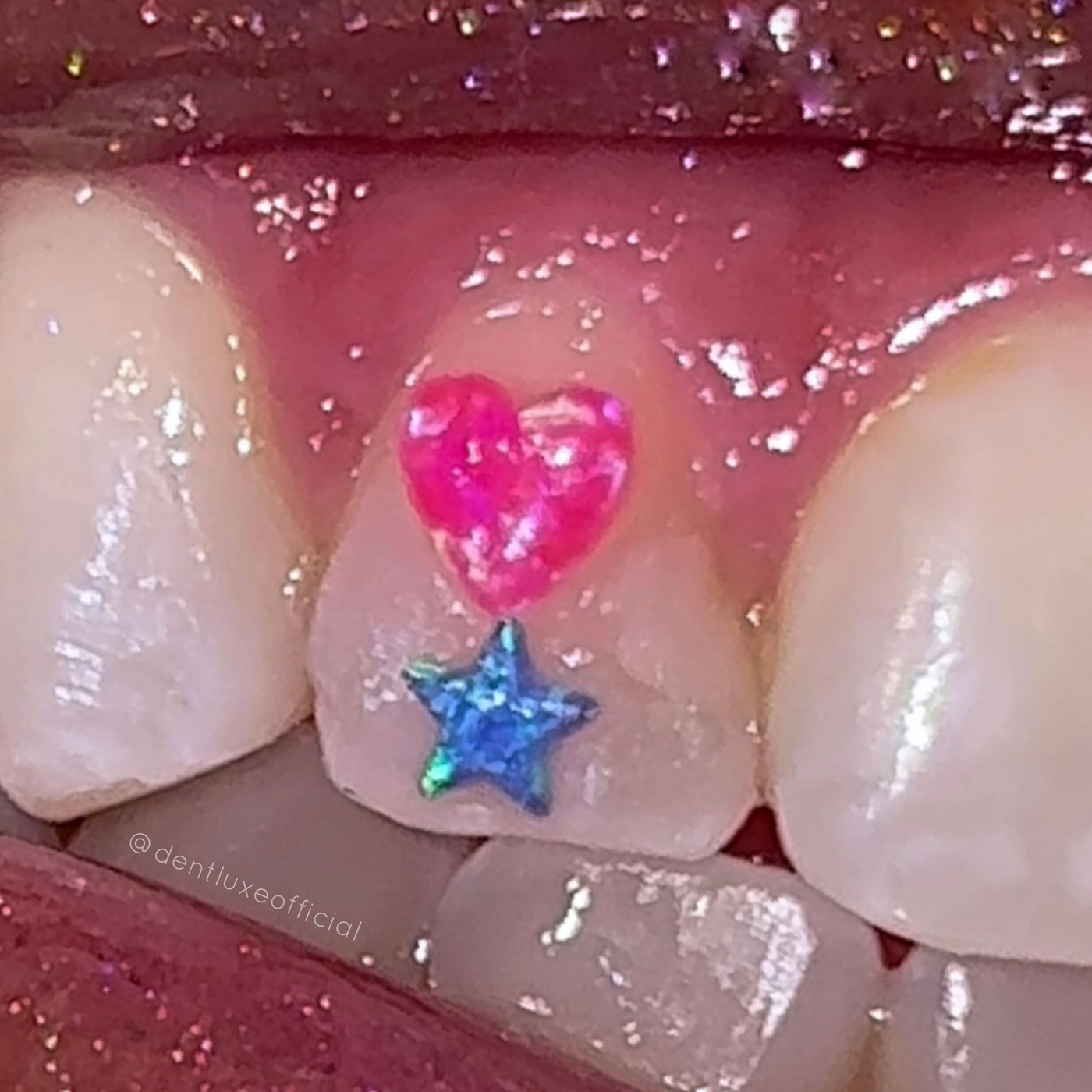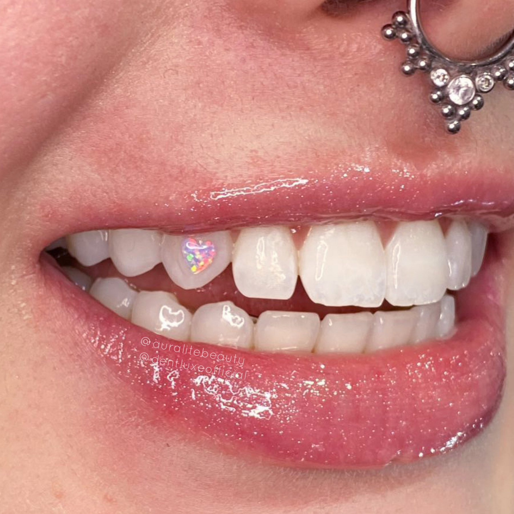 Dentluxe's Heart Opal Tooth Gems are the finest manufactured Bello Kyocera tooth opals on the market. Our opals are lead-free and do not contain harmful products. We offer a wide range of shapes and colours. No two opals are the same due to the magical brilliance in their unique colour.
