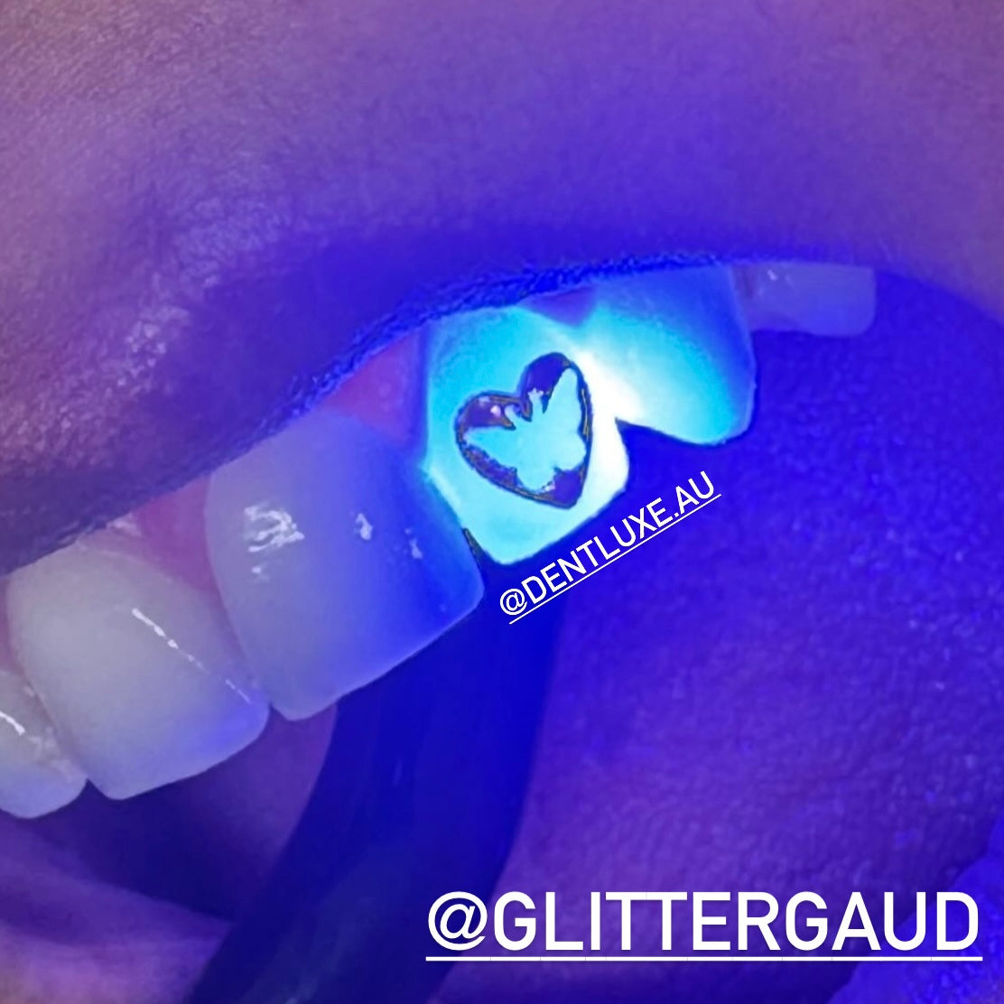 Dentluxe's 18k SOLID GOLD HEART BUTTERFLY Gold Tooth Gems are manufactured from only the finest 18k Solid Yellow Gold. They will not tarnish or discolour in the mouth. All gems have a flat back surface making it possible to safely bond the gem to your tooth. The size of each gem is approximately 5mm (0.5mm thickness). The price listed is for 1 Gold Tooth Gem. Transparent Jar included.