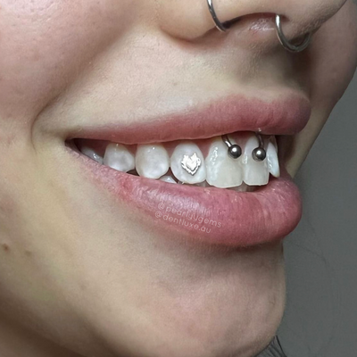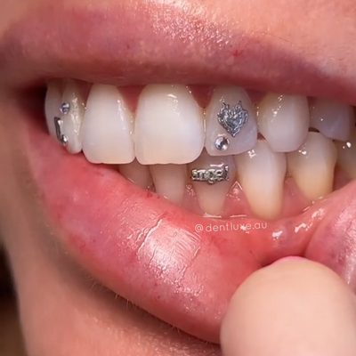 Dentluxe's 18k Gold Tooth Gems are manufactured from only the finest 18kt Solid Yellow Gold. They will not tarnish or discolour in the mouth. All gems have a flat back surface making it possible to safely bond the gem to your tooth. The size of each gem is 3.2mm x 4.1mm (0.7mm thickness). The price listed is for 1 Gold Tooth Gem. Transparent Jar included.