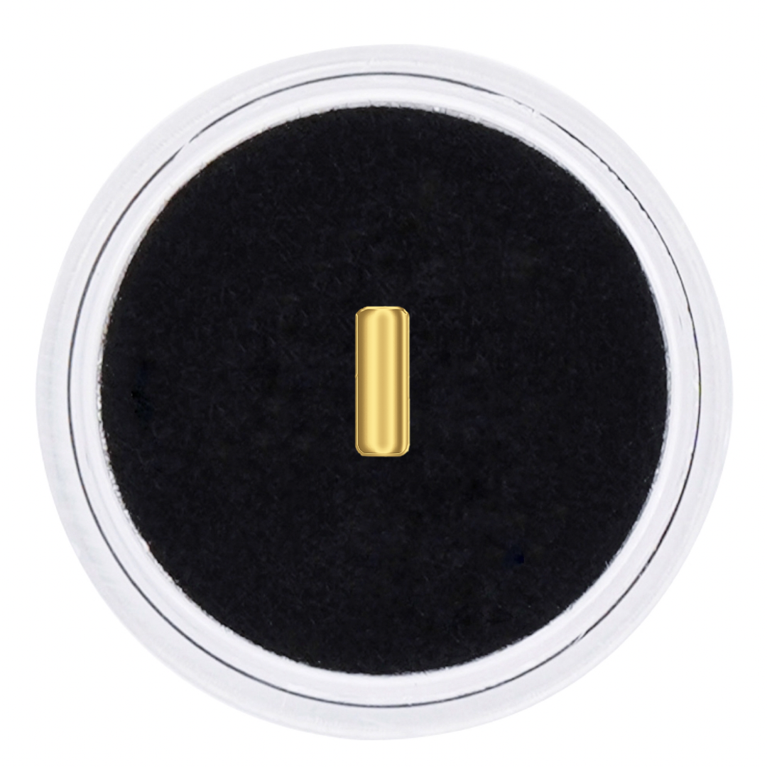 Dentluxe's 18k SOLID GOLD NARROW RECTANGLE BAR CAP Gold Tooth Gems are manufactured from only the finest 18k Solid Yellow Gold. They will not tarnish or discolour in the mouth. All gems have a flat back surface making it possible to safely bond the gem to your tooth. The size of each gem is approximately 6.5mm x 2.5mm (0.7mm thickness). The price listed is for 1 Gold Tooth Gem.