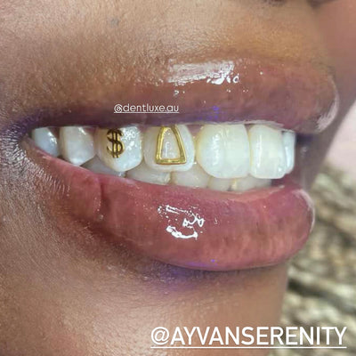 Dentluxe's 18k Gold Tooth Gems are manufactured from only the finest 18kt Solid Yellow Gold. They will not tarnish or discolour in the mouth. All gems have a flat back surface making it possible to safely bond the gem to your tooth. The size of each gem is 2.5mm x 4.5mm (0.7mm thickness). The price listed is for 1 Gold Tooth Gem. Transparent Jar included.