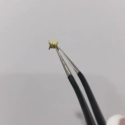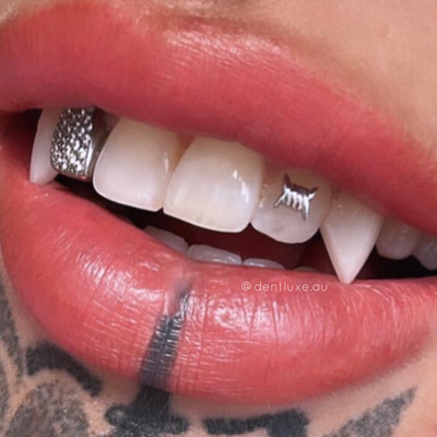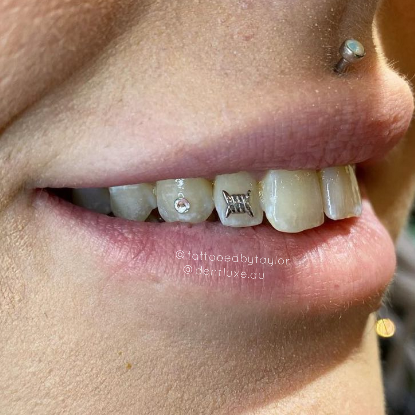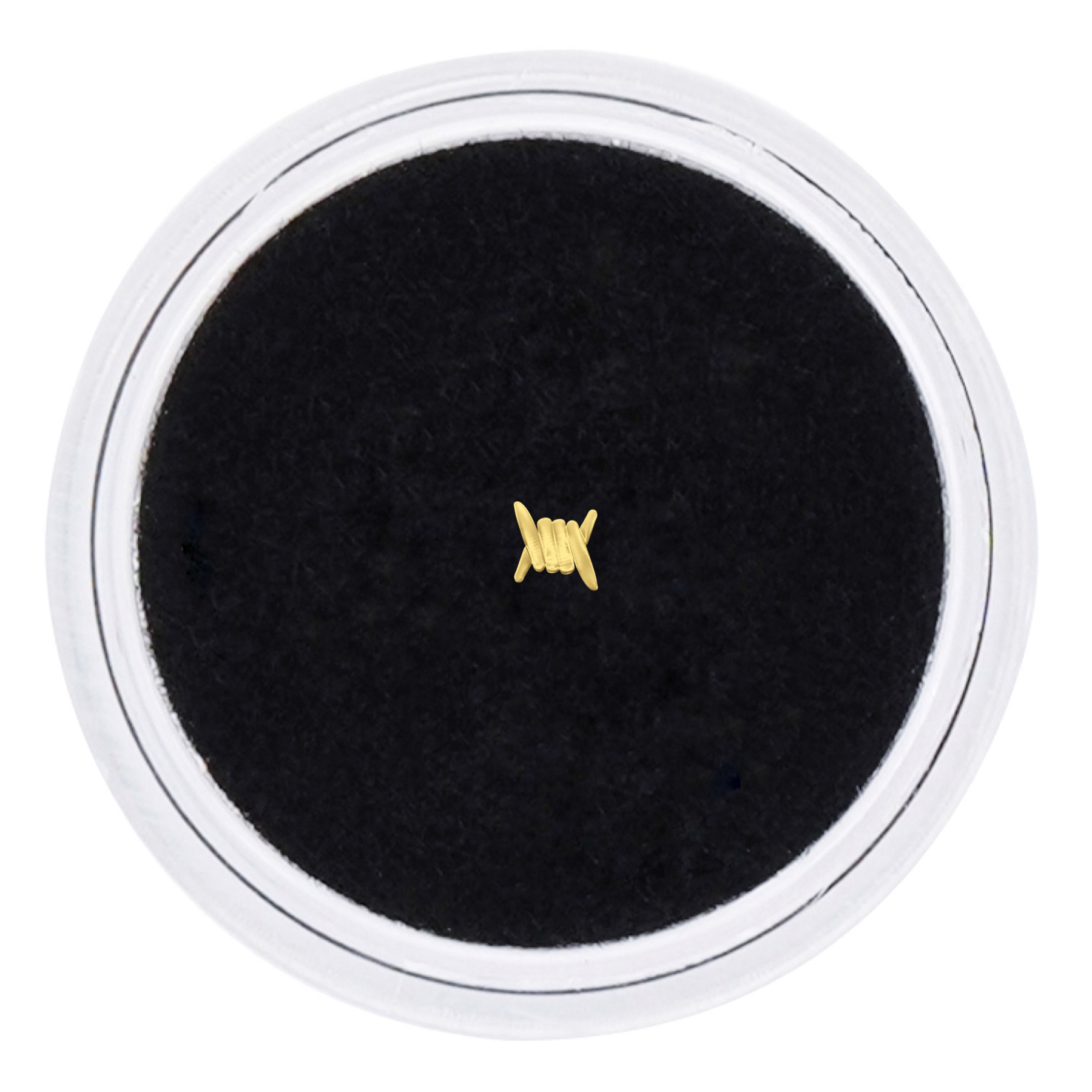 Dentluxe's 18k BARBED WIRE Gold Tooth Gems are manufactured from only the finest 18kt Solid Gold. They will not tarnish or discolour in the mouth. All gems have a flat back surface making it possible to safely bond the gem to your tooth. The size of each gem is approximately 3mm x 4mm (0.7mm thickness). The price listed is for 1 Gold Tooth Gem. Transparent Jar included.