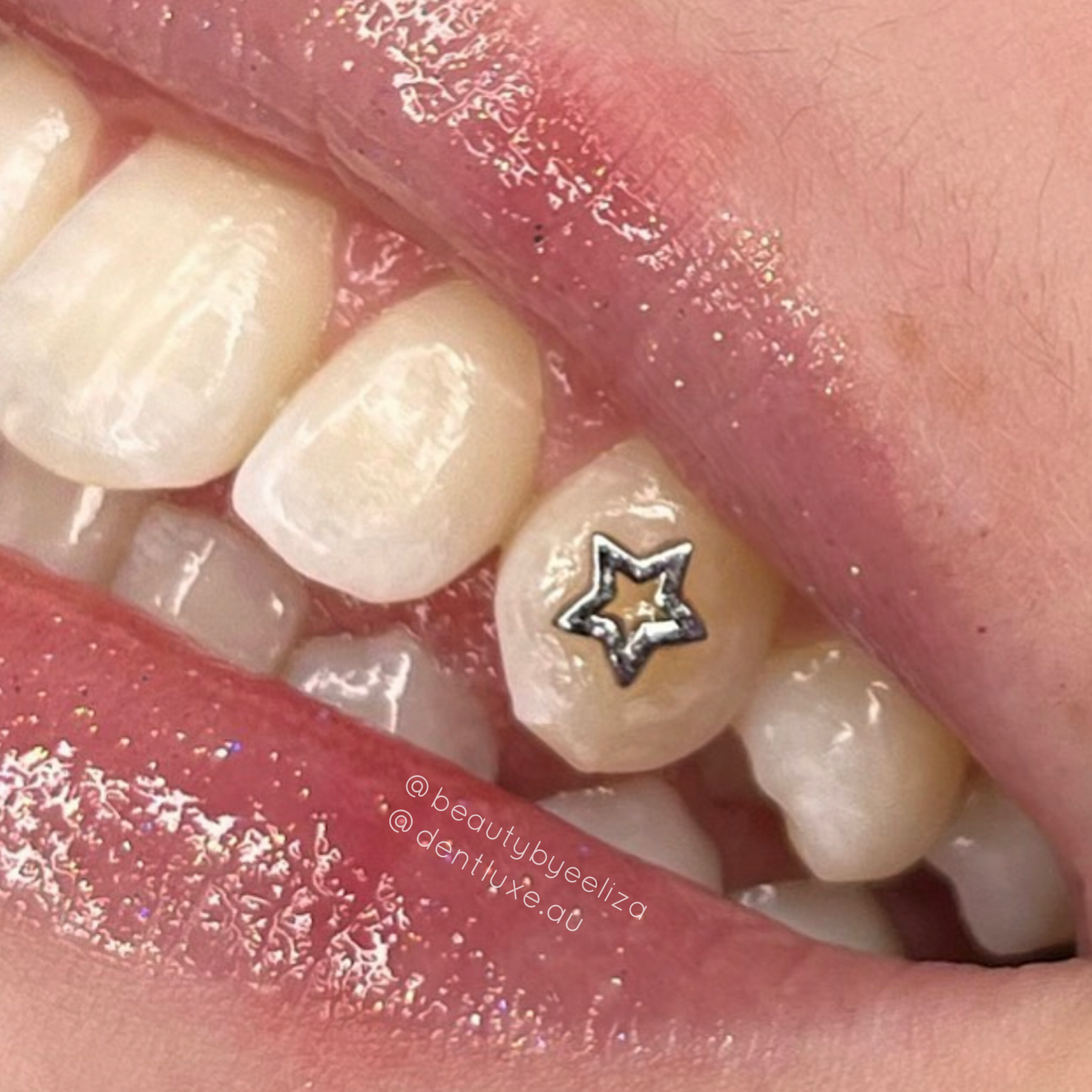 Dentluxe's 18k Gold Tooth Gems are manufactured from only the finest 18kt Solid Yellow Gold. They will not tarnish or discolour in the mouth. All gems have a flat back surface making it possible to safely bond the gem to your tooth. The size of each gem is 3.5mm x 3.5mm (0.7mm thickness). The price listed is for 1 Gold Tooth Gem. Transparent Jar included.